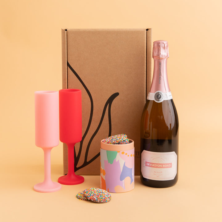 Frivolity in a box - our bubbles hamper is the perfect gift for that special someone who you know loves a glass of bubbles and deserves the best!