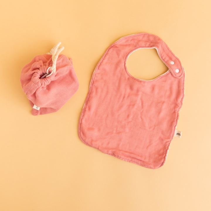 2 x bibs come in a self-fabric bag for the perfect storage solution and great for using when you’re on the go.